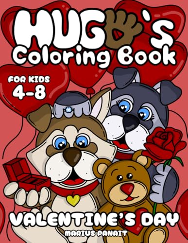 Hugo's Coloring Book For Kids Ages 4-8: 30 Easy to Color Valentine's Day Themed Illustrations Full of Hearts, Chocolate, Flowers, Cupid, Balloons and Adorable Puppies
