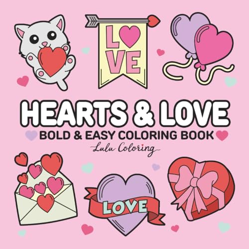 Hearts & Love: Bold & Easy Coloring Book for All Ages, for Girlfriend, Boyfriend or Best Friends, Valentine Hearts, Romantic Flowers, Gifts, Cute Cozy Pets