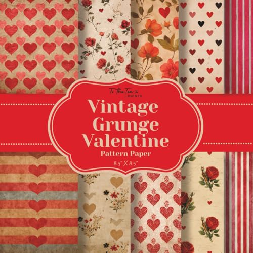 Vintage Grunge Valentine Pattern Paper: 20 Double-Sided Heart, Stripe, and Flower Pattern Sheets for Scrapbooking, Card Making, Junk Journals, Origami, and Other Cut and Create Paper Crafts