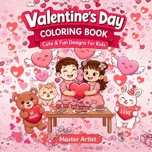 Valentine’s Day Coloring Book for Kids: Cute & Fun Valentine Coloring Pages with Hearts, Teddy Bears, Flowers and Love Ages 3–8