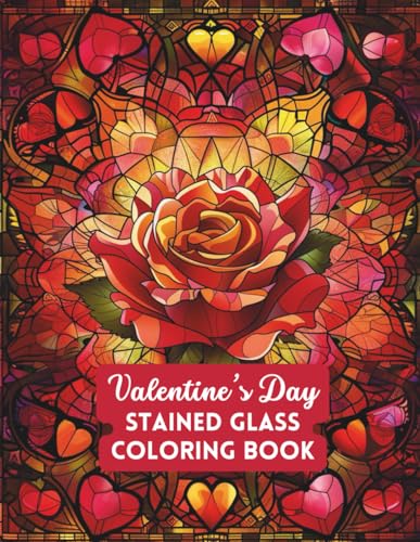 Valentine's Day Stained Glass Coloring Book: Romantic Heart & Flower Window Designs for Adults Featuring Love-Themed Pages for Relaxation and Stress ... Book for Adults — Single-Sided Designs