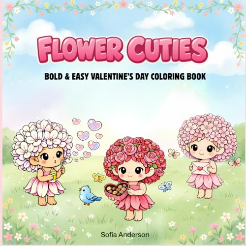 Flower Cuties: Valentine's Day Coloring Book for Adults, Teens and Kids, Bold and Easy Designs for Stress Relief and Relaxation