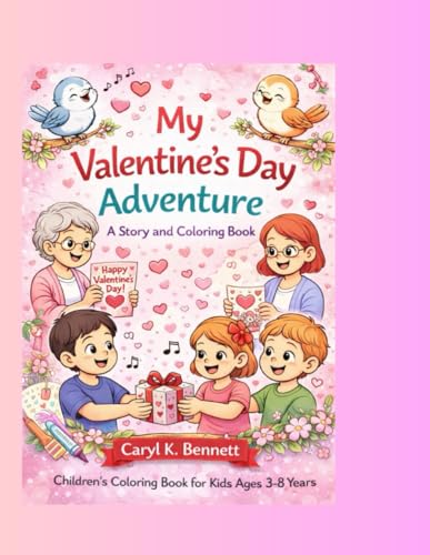 My Valentine’s Day Adventure: A Story and Coloring Book: A heartwarming illustration that features love-themed elements like hearts, flowers, and cute characters.
