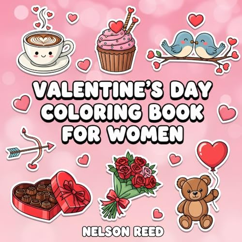 Valentine's Day Coloring Book for Women: Beautiful Love Themed Pages with Hearts, Flowers, Cupids & Sweet Romantic Scenes for Relaxation, Stress Relief and Creative Fun
