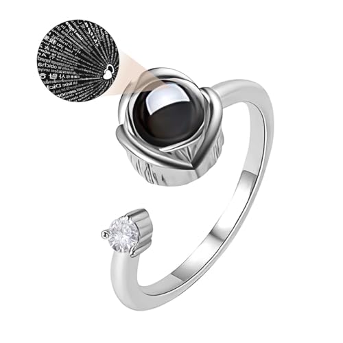 Emibele 100 Language I Love Your Ring, Cubic Zirconia Love Projection Promise Ring, Flower Adjustable Open Ring for Women Lover Wife Girlfriend Mother Valentine Birthday, Silver