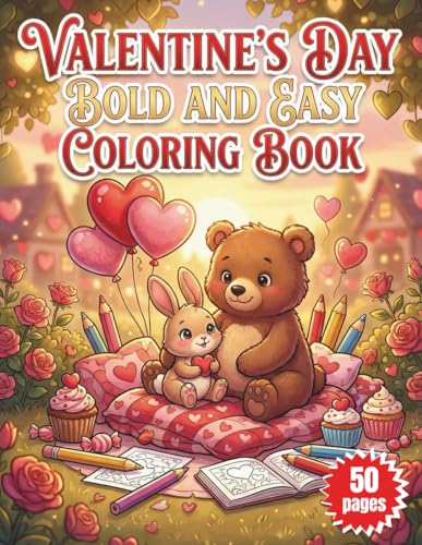 Bold and Easy Valentine Coloring Book: Simple and Thick Lines for Stress Relief: 40 Cute and Cozy Heart, Flower, and Sweet Treat Designs for ... and Kids | 2026 Valentine’s Day Gift Idea