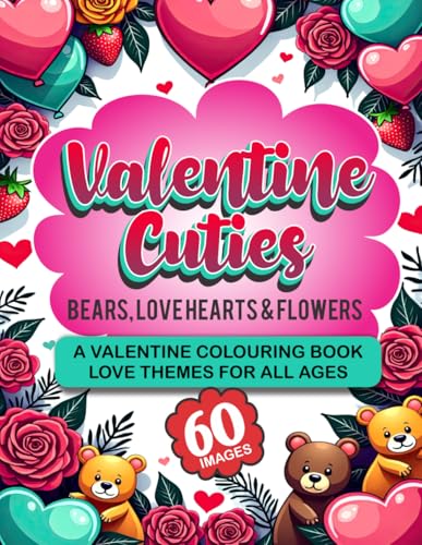 Valentine Cuties, Bears, Love Hearts & Flowers Coloring Book: Valentine Themes for Kids, Teens and Adults