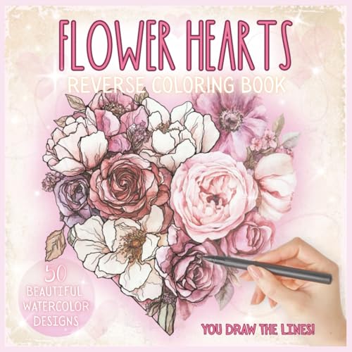 Flower Hearts Reverse Coloring Book: You Draw The Lines, A Relaxing and Mindful Activity, Heart and Flower Designs for Ink Tracing and Doodling, Valentine's Day Gift, Mother's Day Gift