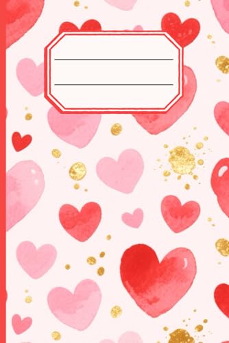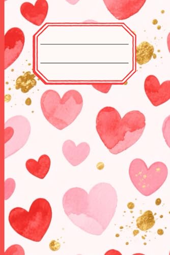Cute Valentine Heart Notebook – Watercolor Pattern Cover: College Ruled Journal with Matte Finish, 119 Pages