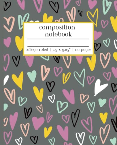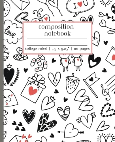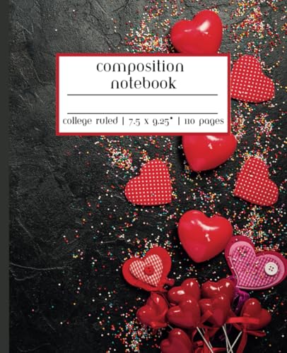 Heart Valentine's Day Composition Notebook College Rule: Line Journal for School, College Students, Work, Diary | 110 Pages, 7.5 x 9.25"