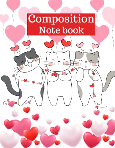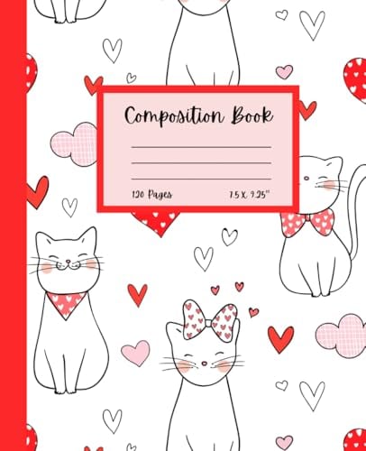 Composition Book: Valentine's Day Heart & Cat Notebook 120 Pages For Teens and Adults