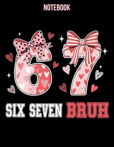 Bruh 67 Six Seven Valentine Notebook: Funny 6 7 Meme Coquette Heart Journal for Girls, Women & Kids