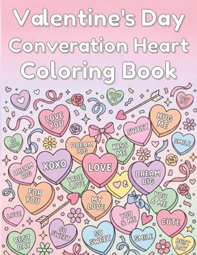 Valentine's Day Conversation Heart Coloring Book: 25 Fun Pages of Cute Candy Hearts with Love Messages - Easy to Detailed Valentine Coloring for Kids, Teens & Adults - Sweet Treats Activity Book