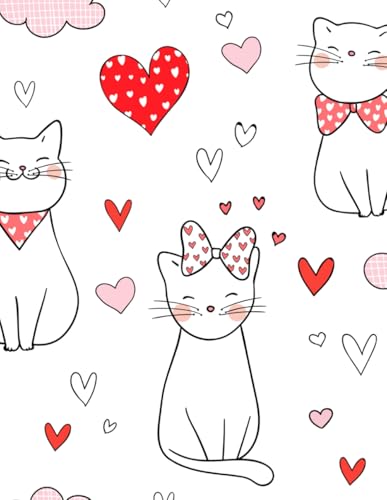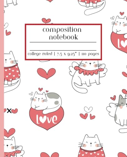 Cat and Heart Valentine's Day Composition Notebook College Ruled: Line Journal for School, College Students, Work, Diary | 110 Pages, 7.5 x 9.25"