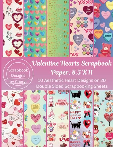 Valentine Hearts Scrapbook Paper 8.5 x 11: 10 Aesthetic Heart Designs on 20 Double Sided Scrapbooking Sheets