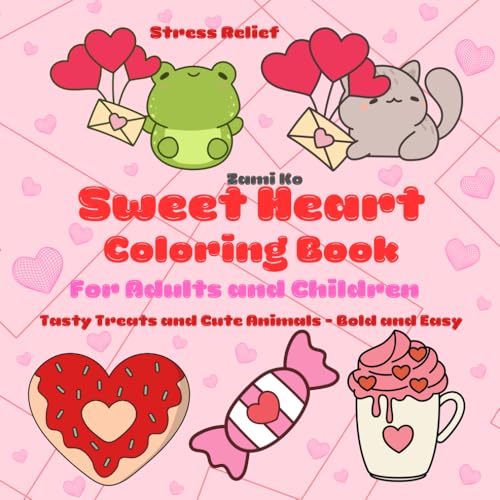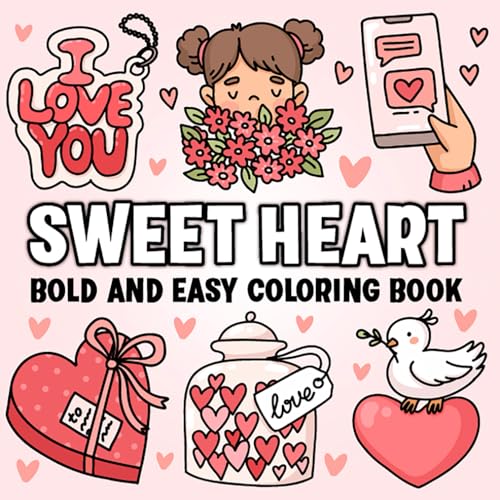 Sweet Heart - Stress relief, Bold and Easy Coloring book for Adults and Children featuring cozy valentine's, sweet heart and love themes