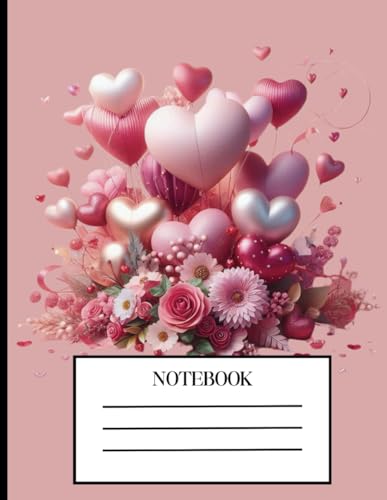 Romantic Valentine’s Heart Notebook: Soft pink hearts and roses for love-inspired journaling.