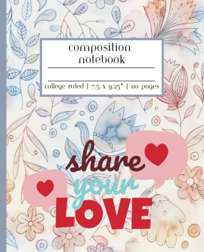 Heart Valentine's Day Composition Notebook College Ruled: Line Journal for School, College Students, Work, Diary | 110 Pages, 7.5 x 9.25"