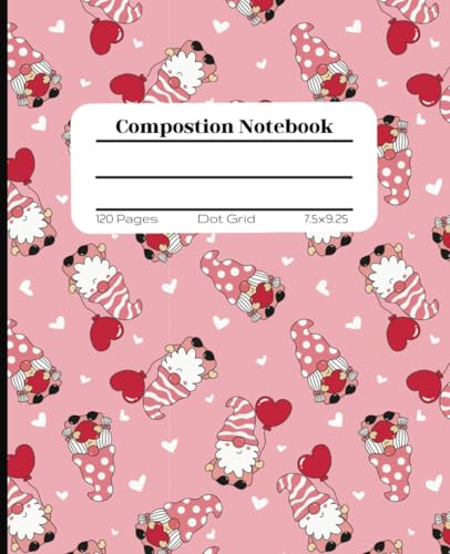 Valentine Gnome Composition Notebook: Cute Pink Gnome with Heart Dot Grid Notebook