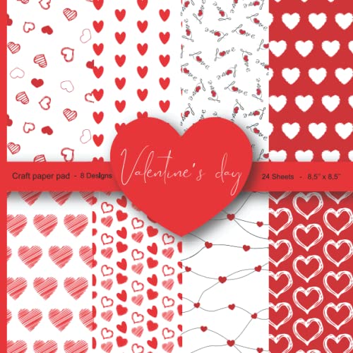 Valentine's day craft paper pad: 8 Designs Valentine Pattern Paper Pack 24 Sheet Heart Love Scrapbook Paper 8.5 x 8.5 Red White Black Colours | Paper ... DIY Crafts , Stationery Making and much more