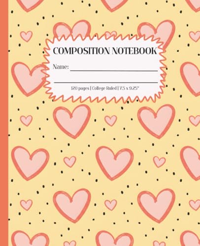 Composition Notebook College Ruled: Cute Valentine Heart Pattern Cover for School, Journaling, Note Taking, Homework, and Everyday Writing