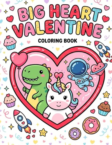 Big Heart Valentine: Bold & Easy Coloring Book for Kids Ages 4-8 with Cute Dinos, Unicorns, Space, and Sweet Treats