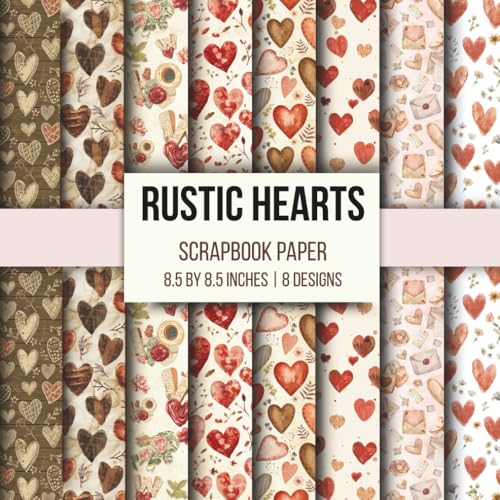 Vintage Valentine’s Day Scrapbook Paper Pack: 8 Unique Patterns, 16 Double-Sided Sheets (8.5” x 8.5”) – Rustic Hearts Backgrounds for Crafts, Journaling, Card Making & DIY Projects