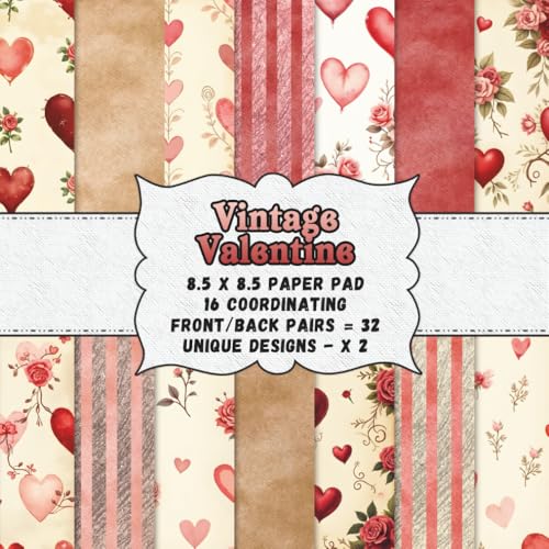 Vintage Valentine Scrapbook Paper 8.5 x 8.5 – Heart & Rose Pattern Paper Pad: Valentine’s Day Scrapbook Paper | Double Sided Paper Pad with ... Journaling, Card Making, Pockets & Decoupage