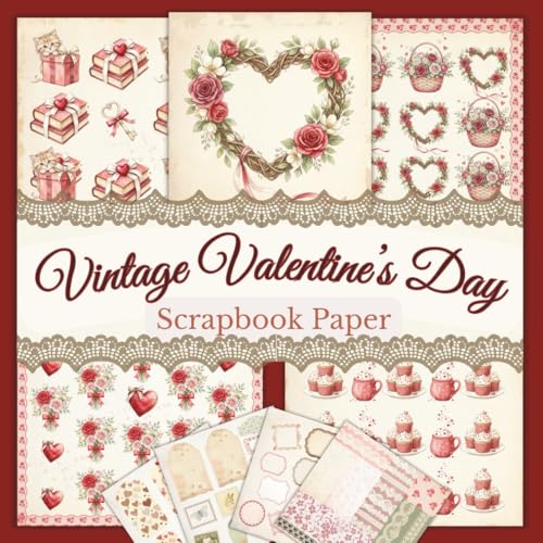 Vintage Valentine’s Scrapbook Paper: 80 romantic vintage pages for scrapbooking, card making, junk journals, collage, decoupage and mixed media, featuring 40 coordinating designs