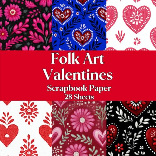 Folk Art Valentines Scrapbook Paper Pad: Double Sided Decorative Sheets for Card Making, Craft Projects Mixed Media Junk Journal, ATC,