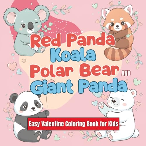 Red Panda, Koala, Polar Bear and Giant Panda Valentine's Day Coloring Book: Easy & Adorable Coloring Book for Kids Ages 4-8: Lovable Cubs and Friendship Scenes