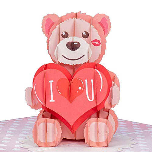 Papperskärlek alla hjärtans dag pop-up kort, I Love U Bear, handgjorda 3D popup gratulationskort för alla hjärtans dag, bröllop, årsdag, kärlek, romantik, alla tillfällen | 12,7 cm x 18,8 cm