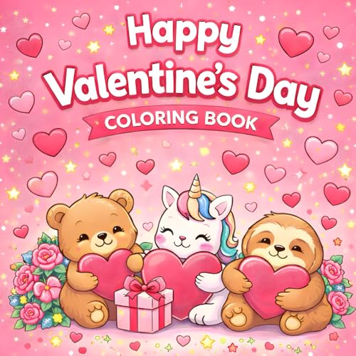 Valentines Coloring Book: A cute Valentine’s Day animal coloring book featuring adorable animals, sweet treats, gift scenes, and heart-filled designs