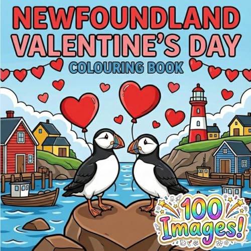 Newfoundland Land Valentine's Day Colouring Book: Coastal Scenes, Puffins, Moose, and Jellybean Houses