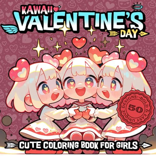 Kawaii Valentine's Day - Cute Coloring Book for Girls: 50 Bold and Easy Valentines Day Illustrations of Friends, Hearts, Love Letters and Cute Girls for Adult Women and Teenage Girls