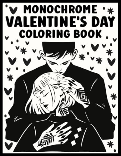 Monochrome Valentine's Day Coloring Book: One-Color Valentines Day Designs for Relaxation, Easy and Cozy Stress-Relief Coloring for Adults, Teens and All Ages