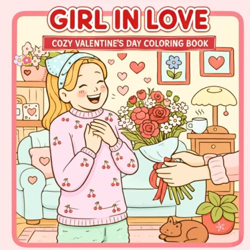 Girl In Love Cozy Valentines Day Coloring Book: For Adults and Teens with 40 Bold and Easy Illustrations Featuring Couples,Self Care Days and Friendship Moments
