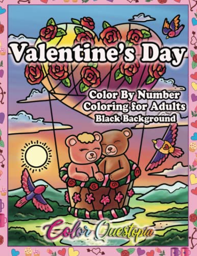Color By Number Valentines Day Coloring For Adults BLACK BACKGROUND: Numbered Hearts, Flowers and Happiness