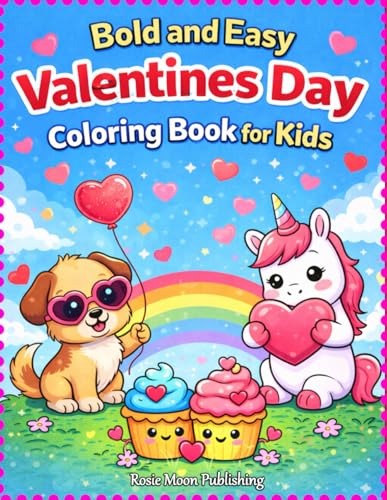Cozy Valentine’s Day Coloring Book for Kids: Big, Simple Valentines Coloring Pages with Cute Animals, Unicorns, Hearts & Delicious Valentine Treats
