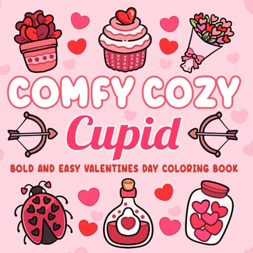 Comfy Cozy Cupid: Valentines Day Coloring Book with Bold & Easy Designs for Adults, Teens & Kids: Bold & Easy Coloring