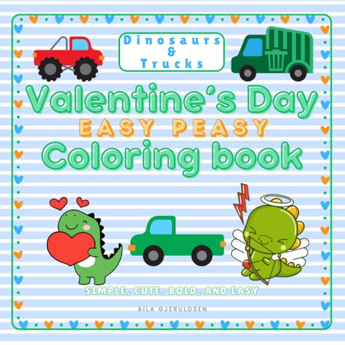 Dinosaurs and Trucks Valentines Day Easy Peasy Coloring Book: Simple Cute Bold and Easy Coloring Book for Adults and Kids