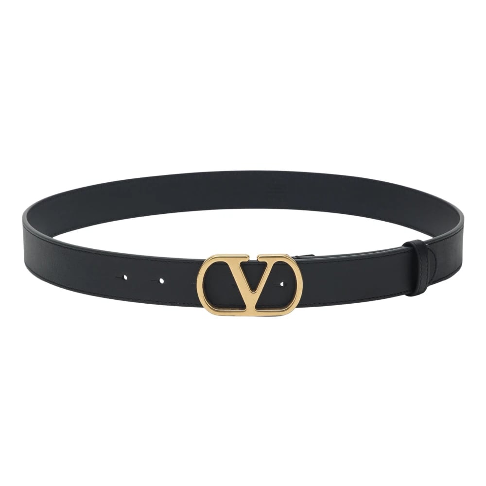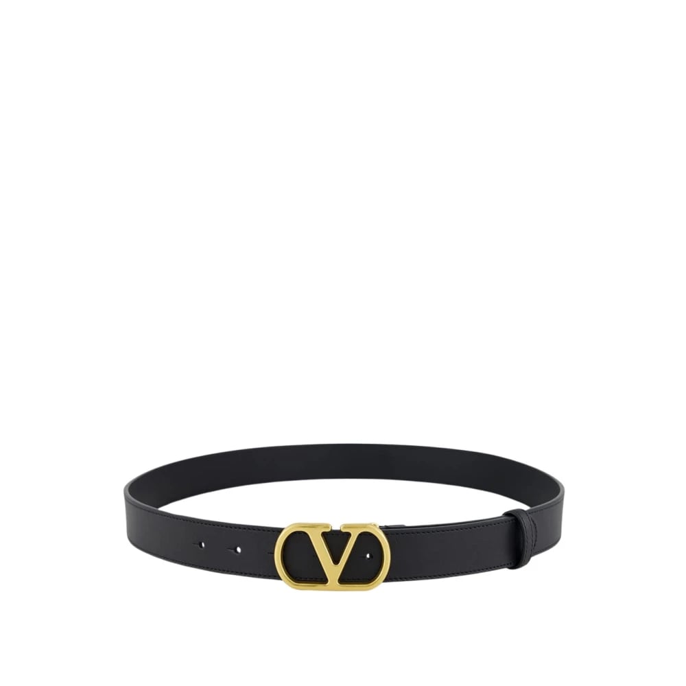 Valentino Garavani, Accessoarer , Herr, 95 CM, Svart VLogo Signature Bälte i Blankt Kalvskinn