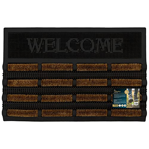 Esschert Design RB176 gummi/kokos "välkommen" dörrmatta, kokos dörrmatta, gummi, svart och brun, 75 x 25 x 2,4 cm