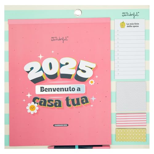 Mr. Wonderful - Magnetisk väggkalender 2025-2025, välkommen till ditt hem – innehåller 4 ark klistermärken, 2 x självhäftande anteckningsblock
