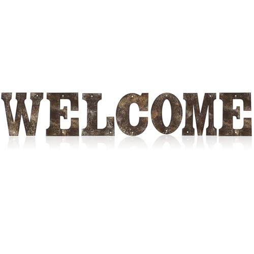 7 stycken 10 cm rostiga platta metallbokstäver utomhus land metall bokstavsdekorationer rustik metall bokstav väggdekor rostig välkommen väggskyltar för hem lada barnkammare vardagsrum