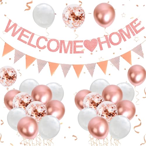 YSUVIN Välkommen hem, flaggor, banderoller och ballonger för hem, bröllop och inflyttningsfest, roséguld