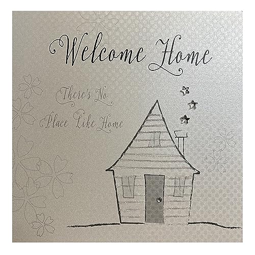 white cotton cards Välkommen plats som hem, hus handgjort kort, wb49-w