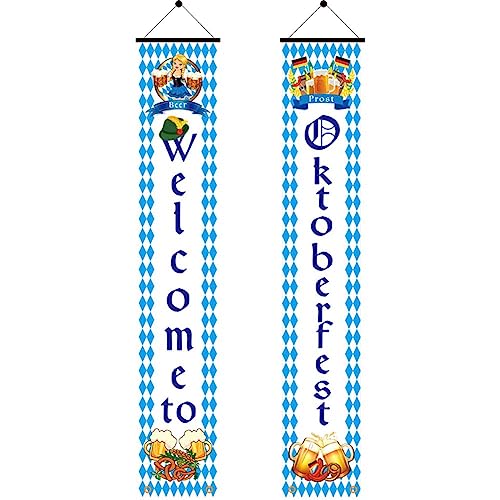 Fituenly Oktoberfest dekorativ banderoll, ölfestival dekorationsset, bayersk oktoberfest flaggor veranda skylt välkommen banderoll för oktoberfest inomhus utomhus hängande dekoration
