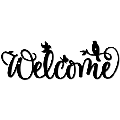 CREATCABIN Välkommen metall väggdekor svarta ord vägg hängande dekor järn väggkonst utklipp silhuett fåglar på grenar skulptur dekoration skylt prydnad för yoga trädgård balkong inomhus utomhus 30 x
