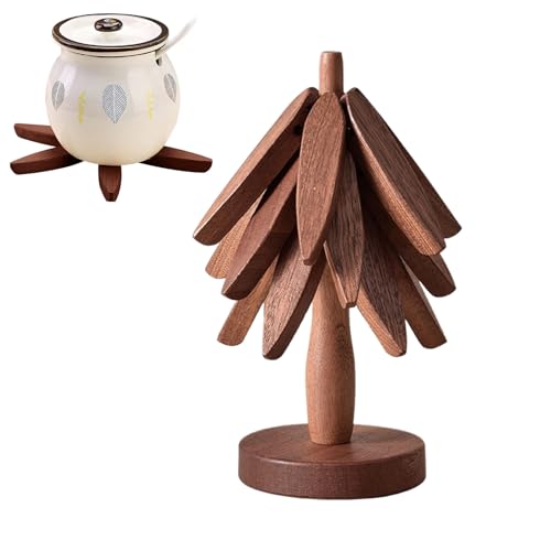 Trägrytunderlägg set för varma rätter, valnötsträd form underlägg, träbordsmatta, halkfri värmebeständig kök grytlapp dynor, trä underlägg för varma stekpannor, kopp, tallrikar, tekanna
